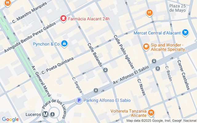 La zona: Calle Belando se encuentra en el corazón de Alicante, con todo al alcance de la mano: supermercados, colegios, farmacias, restaurantes, zonas de ocio y el pulmón verde de la Plaza de los Luceros. A pocos minutos andando encontrarás El Corte Inglés, la Avenida Maisonnave y el Mercado Central. Además, la excelente conexión de transporte público (TRAM, autobuses y estación de tren) facilita la movilidad por la ciudad y hacia la playa del Postiguet.