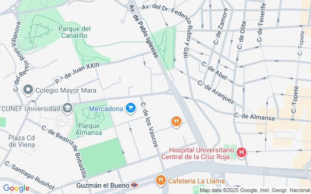 Ubicado en la zona de Ciudad Universitaria, el apartamento está rodeado de diversos puntos de interés, como el Hospital de La Cruz Roja S. José y Santa Adela. Ofrece una amplia variedad de opciones gastronómicas, incluyendo restaurantes de renombre como Bar Paréntesis, Drunken Duck y The Beer Temple. Comprar alimentos es muy fácil gracias a la cercanía de La Plaza de Día y Mercadona, lo que garantiza que todos los servicios estén a poca distancia.