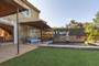 - Saliendo de la cocina, encontrarás el jardín con piscina. Así como un primer porche con un comedor exterior, y una zona de descanso.