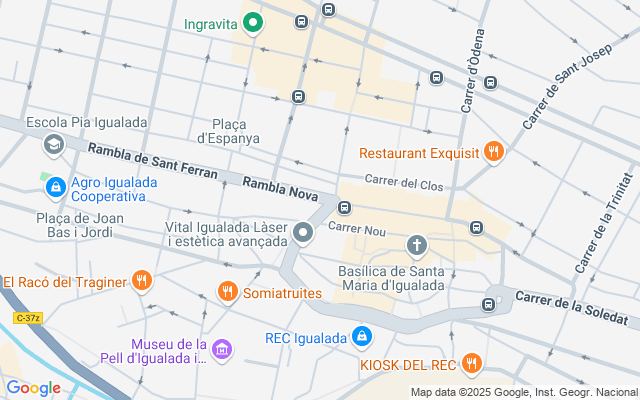 Situat al centre d'Igualada, a primera línia comercial, concretament a la Rambla Nova, a tocar de la Rambla Sant Isidre.