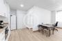 La zona de día ofrece un ambiente abierto y luminoso, que integra salón, comedor y cocina en un espacio práctico y versátil. La cocina está equipada con los electrodomésticos necesarios y destaca por su gran capacidad de almacenamiento con múltiples armarios, además de disponer de una mesa de comedor para dos personas y una mesa con silla ideal para trabajar o estudiar desde casa.