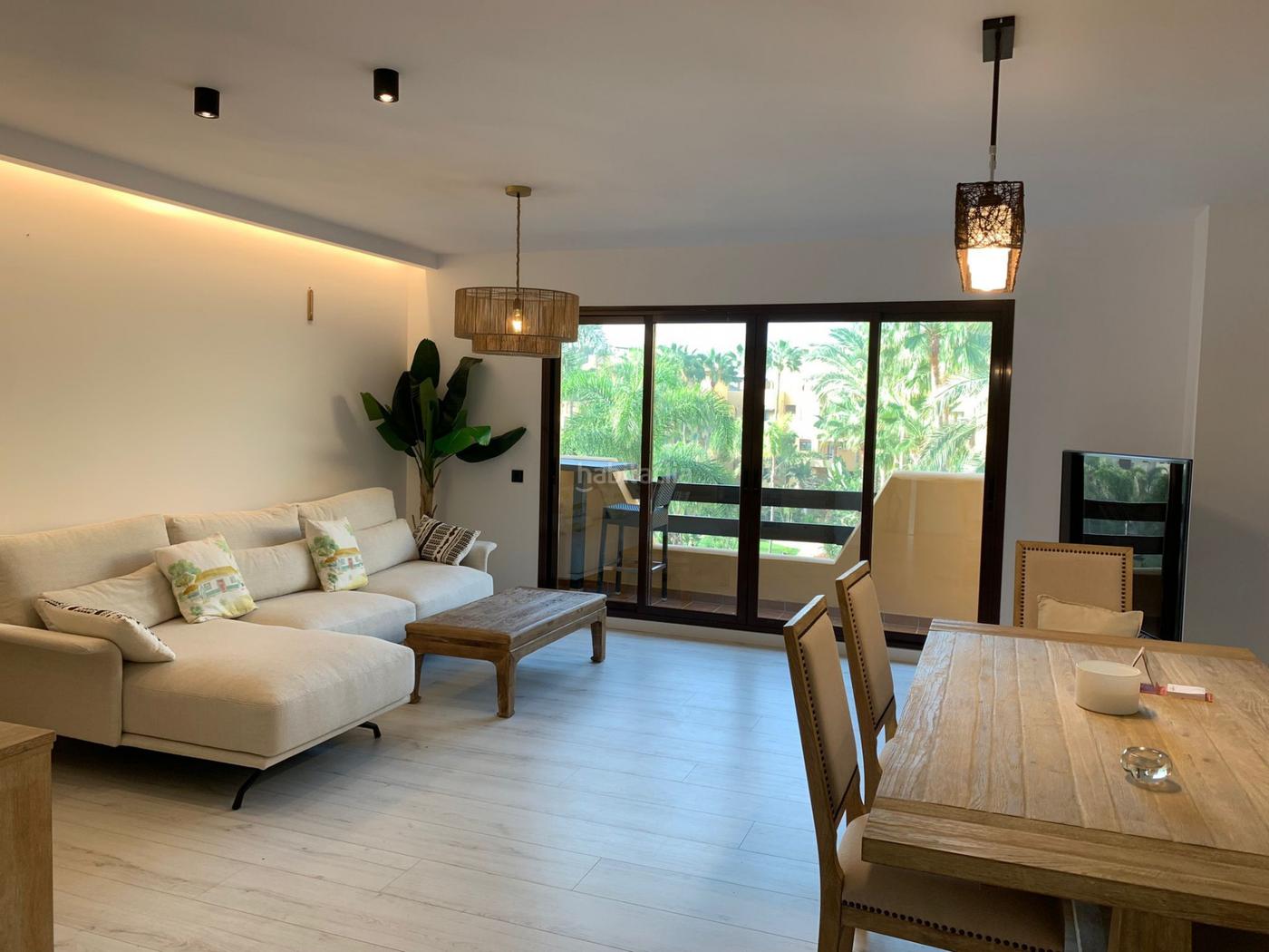 Apartamento en alquiler en Costalita del Mar, Estepona con 3 dormitorios, 3 baños y con orientación sur/este, con piscina comunitaria, garaje privado (1 plazas) y jardín comunitario. Respecto a las dimensiones, la propiedad presenta 150 m² construidos, 130 m² en interior y 20 m² de terraza. Tiene las siguientes características servicios cercanos, aire acondicionado, completamente amueblado, cocina totalmente equipada, entrada de seguridad, cristal doble, servicio de seguridad 24h, terraza privada, cocina equipada, salón, rejas, lavadero, internet - wi-fi, terraza cubierta, 24 horas de servicio, comunidad cerrada, ascensor, vistas al jardín, vistas panorámicas, cerca de playa / mar, cocina americana, excelente estado, recientemente renovado, tiendas cerca, cerca de la ciudad, colegios cerca, puerta blindada, aerotermia y internet - fibra óptica.