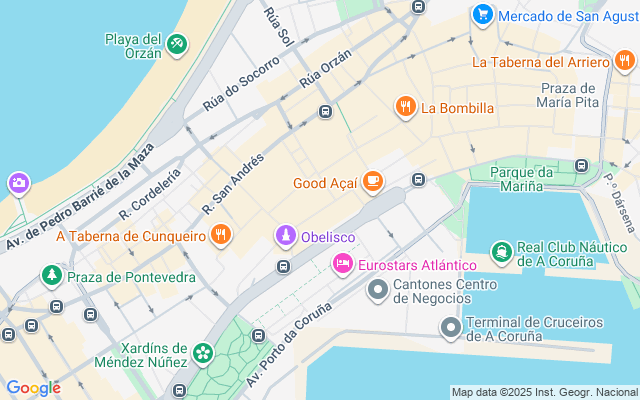 Excelente ubicación en una de las principales calles de la ciudad. La calle Real es uno de las calles más céntricas y transitadas de A Coruña. Muy próxima a los principales atractivos de la ciudad, el Obelisco, Los Jardines de Méndez Núñez, La Marina, María Pita o las playas de la ciudad, entre otros. Los comercios, restaurantes, paradas de autobuses, farmacias o aparcamientos públicos, son una parte de la multitud de servicios y comodidades que ofrece esta excelente ubicación. El encanto de los edificios con galería o el ambiente distendido de turistas y residentes son los principales atractivos de esta zona.