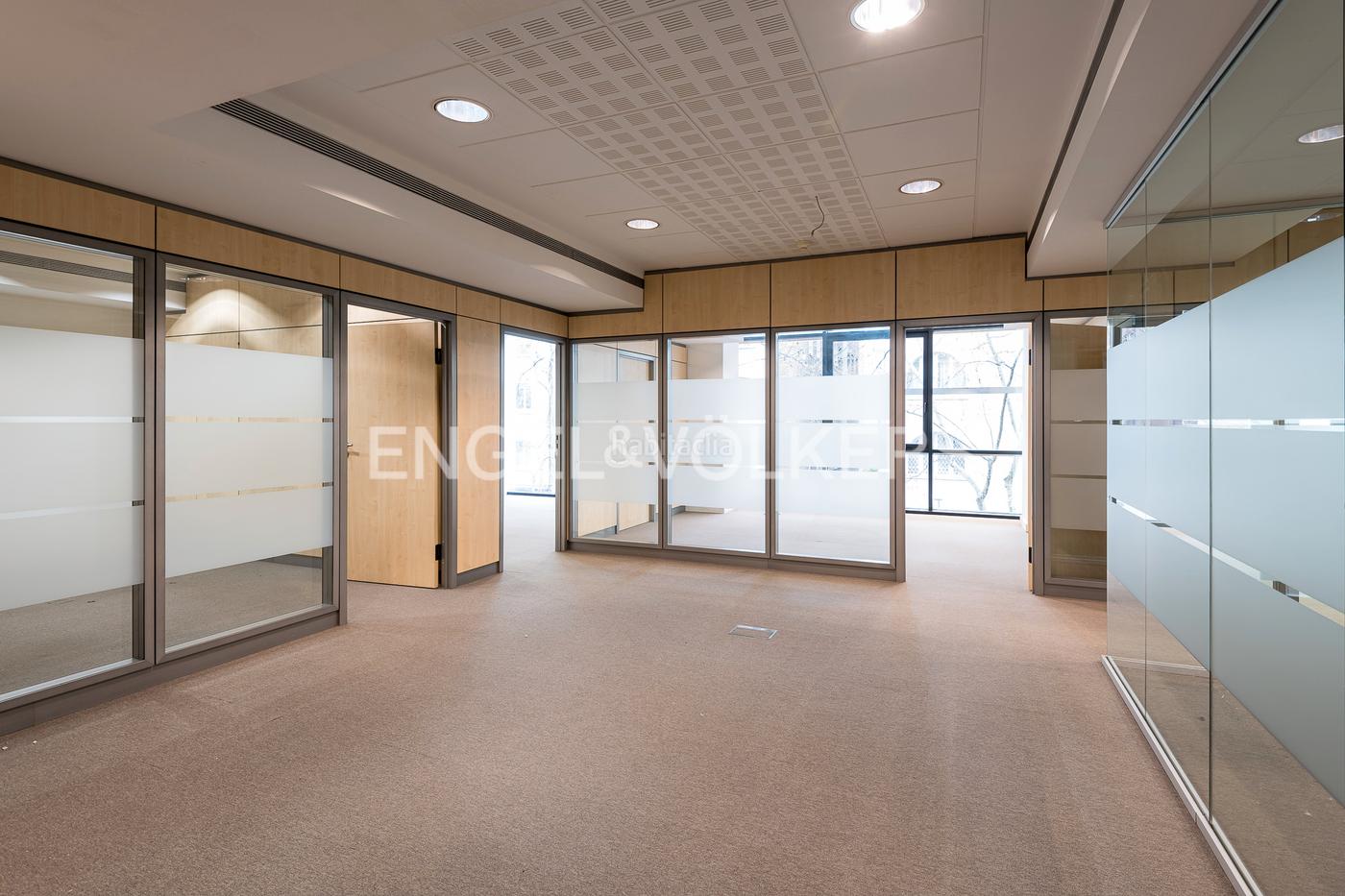 Office located in an exclusive office building, situated in the upper part of the city, just a few meters from Avenida Diagonal next to the prestigious Turó Park. It has open spaces and offices, currently distributed with partitions into 4 exterior offices facing the street and 5 additional rooms, but it can be adapted to your needs. Double set of restrooms and a climate-controlled server room.
