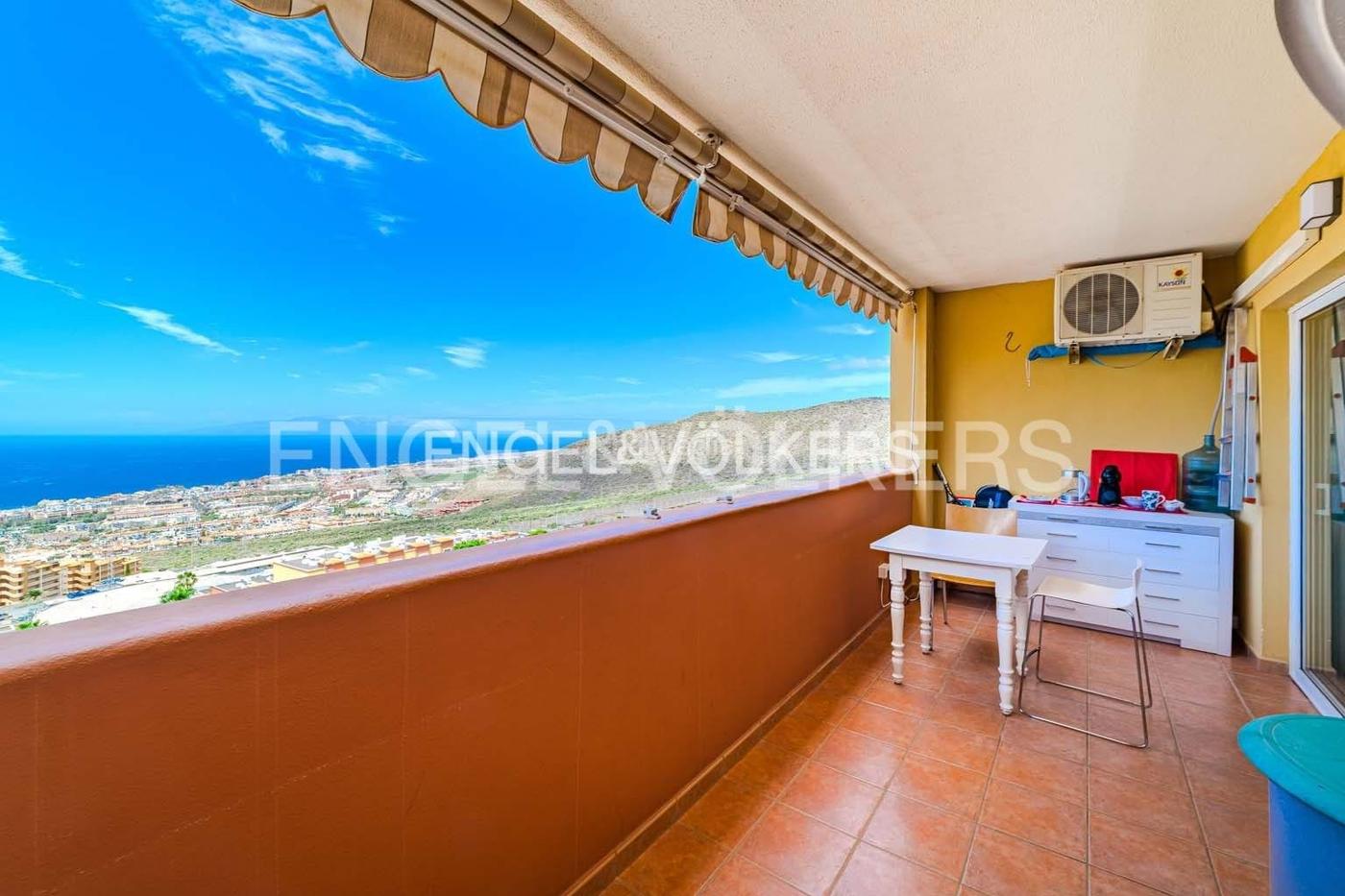 Este apartamento está ubicado en la última planta del complejo residencial “Roque del Conde UD4”, muy cerca de la famosa “Playa del Duque”. Unos cuidados jardines rodean la gran zona de la piscina comunitaria, la cual impresiona con sus preciosas vistas al Océano Atlántico. El apartamento ofrece dos dormitorios, un baño y una cocina totalmente equipada. La zona de estar y comedor, de planta abierta, ofrece una transición fluida a la hermosa terraza, desde dónde se puede disfrutar de una vista del mar color turquesa de Costa Adeje. También las bonitas vistas a las montañas de las que se puede disfrutar en ella es otro de los atractivos de esta bonita terraza. Además, los toldos brindan sombra y protección contra el viento cuando se desee. Junto a todo esto, el apartamento incluye una plaza en el garaje.