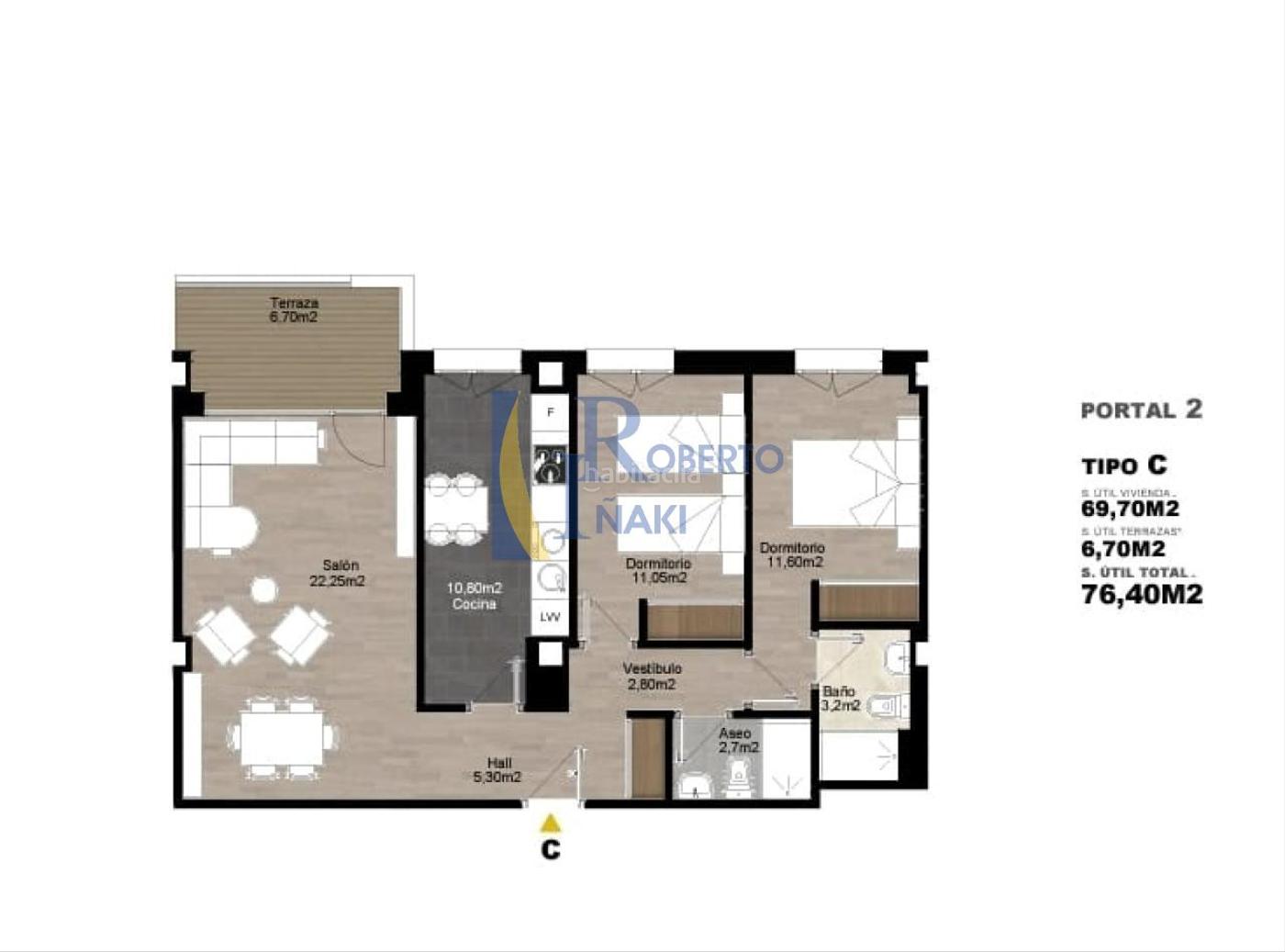 VENTA DE PISO EN CONSTRUCCION EN LA LASTRA, de 2 habt., 1 cocina, 1 salon y 2 baños.