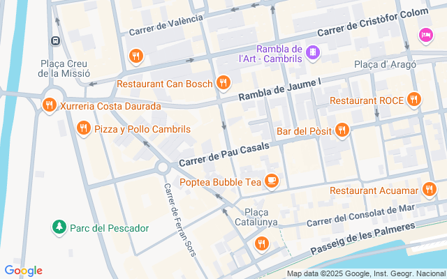 Cambrils es un municipio ubicado en el nordeste de España, en la comunidad autónoma de Cataluña. Pertenece a la provincia de Tarragona, y a la comarca del Bajo Campo. Cuenta con 36 496 habitantes (INE 2023) y es el quinto municipio más poblado de la provincia.3? Se sitúa a 19 kilómetros de la capital provincial.