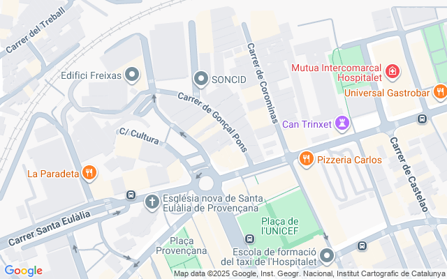 El inmueble se encuentra en Santa Eulàlia, uno de los barrios más consolidados y con gran proyección de L’Hospitalet de Llobregat. Se trata de una zona bien conectada con la red de transporte público: la estación de metro Santa Eulàlia (L1) se encuentra muy cerca, lo que facilita el acceso a Barcelona y al resto del área metropolitana.