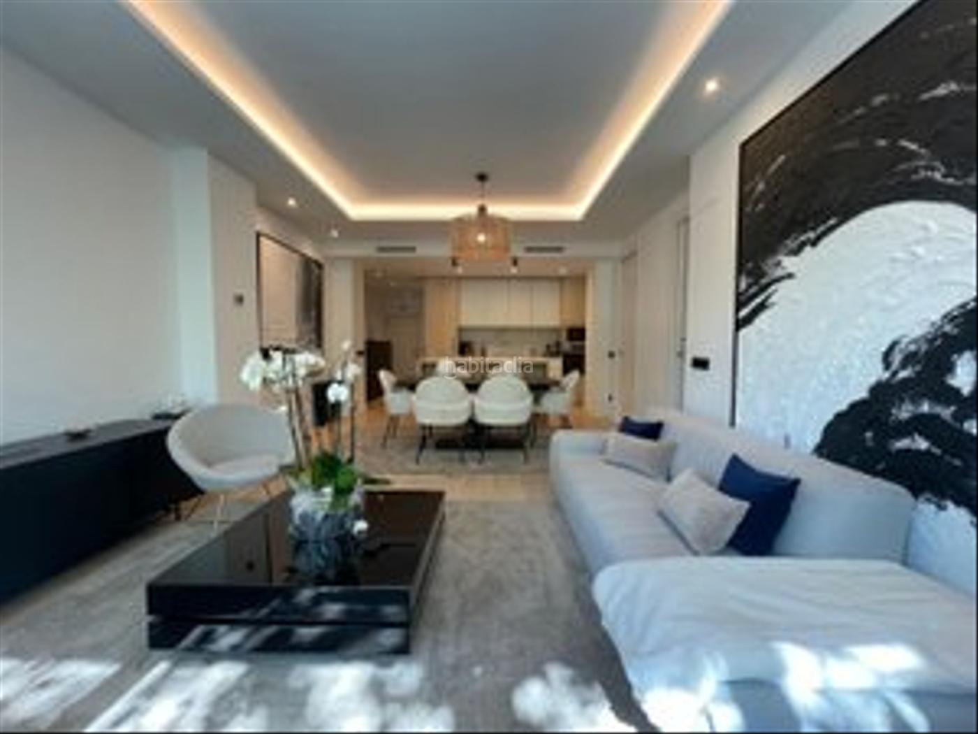 Se entrega amueblada con mobiliario actual de calidad y cuidada selección de piezas. El salón-comedor es amplio, muy luminoso gracias a sus ventanales de gran formato y ofrece vistas directas a la Castellana, lo que aporta amplitud y una perspectiva privilegiada.