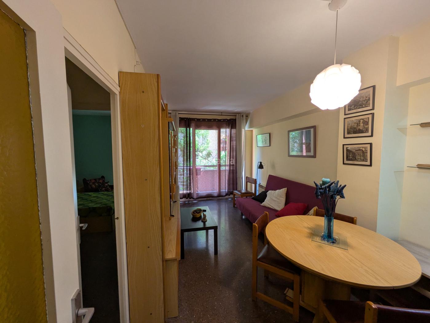 La propiedad cuenta con una habitación doble, un baño completo y un salón comedor amplio con cocina americana, lo que crea un espacio abierto y luminoso, perfecto para disfrutar del día a día. El piso se encuentra totalmente amueblado y listo para entrar a vivir, sin necesidad de reformas.