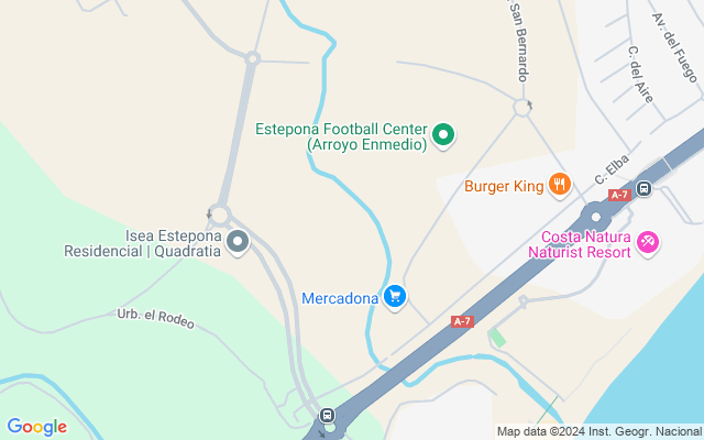 El complejo residencial se encuentra en una zona consolidada residencial de baja altura a solo 1km de la playa y en las proximidades de un campo de golf, una escuela, un hospital, asi como supermercados, restaurantes, bares y farmacia a poca distancia a pie (400 m). La parcela está ubicada en una zona tranquila sin ruidos de carretera pero con una rápida salida a la vía principal A7: a 8 minutos en coche del centro histórico de Estepona y del puerto de Estepona; a 15 minutos en coche de Puerto Banús; a 20 minutos en coche de Marbella; y a 45 minutos en coche del aeropuerto de Málaga y Gibraltar.