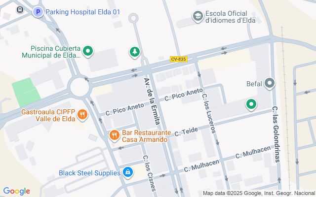 Nave industrial en venta en Elda con una superficie de solar de 850m2. En la nave, encontramos zonas de oficinas, baños, montacargas, gran portón y vestuarios. Muy bien situada ya que es una esquina que da a 2 calles, con 35 metros lineales de fachada a la calle pico Veleta y 27 metros lineales a la calle de la ermita y 5,40 metros de altura..