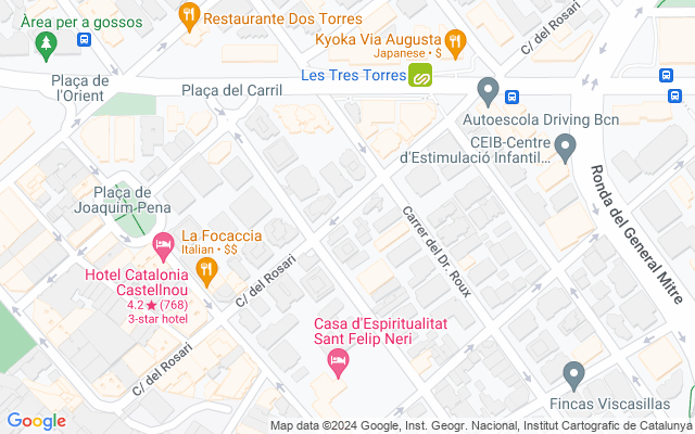 Tres Torres, concretamente, es un barrio residencial del distrito de Sarriá-San Gervasio de la ciudad de Barcelona. Es uno de los sectores pertenecientes al antiguo municipio de Sarriá y en sus inmediaciones se encuentran algunos de los centros comerciales más importantes de la ciudad, como El Corte Inglés o la Illa Diagonal. Su urbanización y edificación se inició hacia 1860, a medida que el tren de Sarriá (de Plaza de Cataluña a Sarriá) se iba construyendo. En él, encontramos edificios residenciales, muchos de ellos construidos en los años 80, con pisos de alto standing, exteriores y de grandes superficies. Tres torres es una zona muy demandada debido a su enclave privilegiado, a escasos metros de la Bonanova por el norte y de Vía Augusta al sur. Cuenta con servicios, comercios, parques y muy buena conexión de transporte público y proximidad a accesos y salidas de la ciudad.