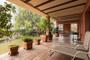 Al entrar, nos recibe un jardín con césped y varios árboles. De frente vemos la puerta principal, hecha en madera maciza con herrajes totalmente artesanales y desde aquí sucede la distribución a las distintas estancias de la vivienda.