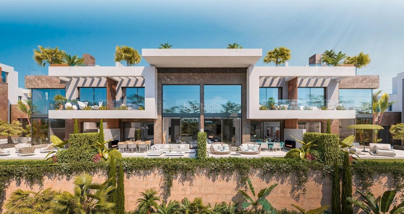 Adosadas moderna nueva a estrenar cuentan con acabados de excelente calidad. Debido a la pendiente del terreno, estas propiedades de lujo están construidas en diferentes niveles para mezclarse con el desnivel. Esto garantiza unas vistas espectaculares y despejadas al Mediterráneo desde cada una de las viviendas. Adosadas de 4 dormitorios, distribuidas en sótano, planta baja y planta primera. También incluyen un solárium en la azotea con piscina privada, que también ofrece unas vistas increíbles. La zona de garaje subterráneo tiene un único acceso para vehículos desde la calzada evitando la circulación del tráfico en el interior de la urbanización. Las áreas comunes del proyecto incluyen una piscina al aire libre, amplios jardines con amplios caminos a cada casa. El desarrollo también incluirá un gimnasio al que se puede acceder desde el piso superior de la terraza comunitaria. El gimnasio contará con baño turco, sauna, sala de masajes y vestuarios y aseos, uno de los cuales, estará especialmente adaptado para minusválidos. * Los precios y la disponibilidad son correctos al momento de la publicación y están sujetos a cambios. Por favor contáctenos directamente para confirmar disponibilidad y precios. PRECIO DESDE: 1.675.000E + IVA