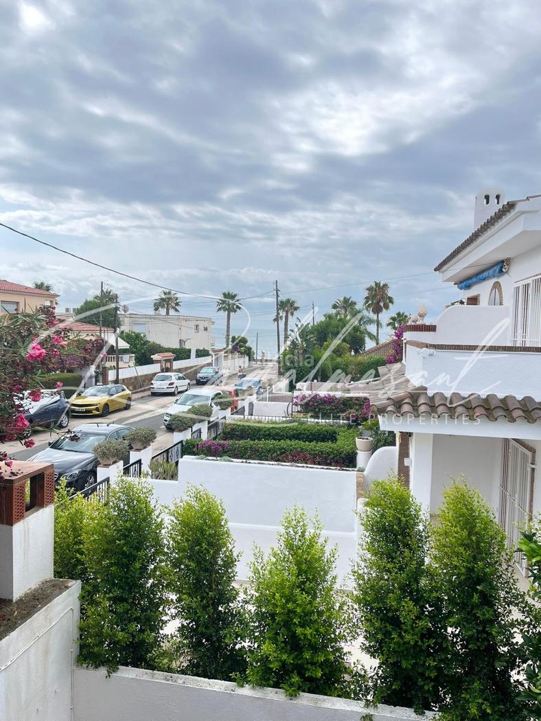 CASA BIFAMILIARE IN VENDITA A LA LLOSA. Casa situata nel complesso residenziale La Llosa con vista mare. Distribuito su due piani con terrazza e giardino piastrellato di 20 m² con barbecue in muratura. Caratteristiche generali: -Comunità di 4 vicini, la proprietà confina con la strada. -Primo piano: comprende un bagno, una cucina a pianta aperta completamente attrezzata e un ampio soggiorno-sala da pranzo con camino funzionante e accesso diretto al giardino tramite una porta scorrevole in vetro. Vi è un accesso diretto dall´esterno al giardino, senza dover entrare in casa per una maggiore funzionalità. -Secondo piano: dispone di 3 camere matrimoniali con 4 armadi a muro in totale; un bagno completamente attrezzato, con spazio per una lavatrice e una terrazza di circa 6 m2, con vista sul mare. -Venduto con elettrodomestici e senza mobili. -Ristrutturazione sia esterna che interna: nuovi bagni, soffitti e pavimenti. Finestre in alluminio. - Sbarre alle finestre che si affacciano direttamente sulla strada. -Parcheggio esterno indipendente e deposito inclusi nel prezzo.