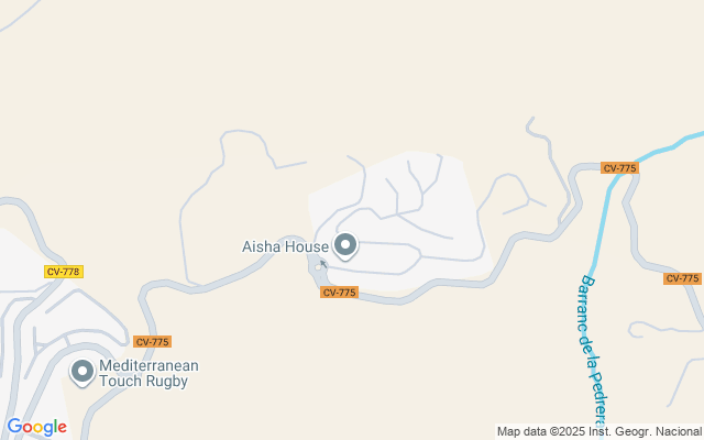 Hay un jardín con patio de dos niveles en la parte atrás de la casa y dos terrazas en la parte delante con vistas panorámicas del valle y hasta el mar en la distancia.