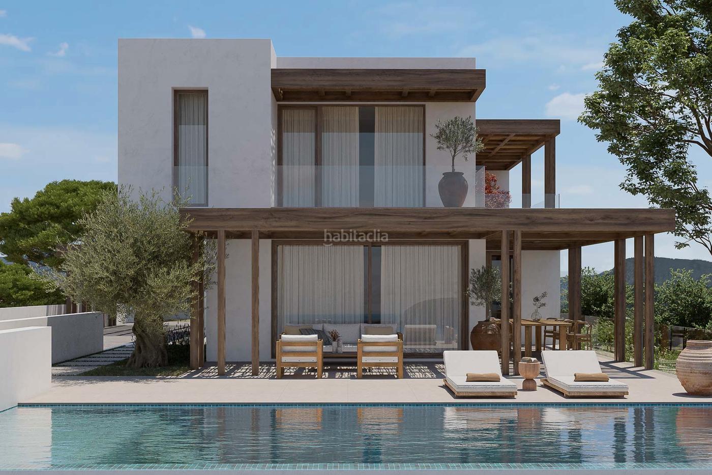Si el interior de la villa destaca por su sofisticación, el exterior es un auténtico paraíso. La terraza principal, de 83,72 m², está diseñada para el disfrute, con zonas de sombra creadas por pérgolas de madera y un espectacular solárium que rodea la piscina de 10×4 metros. La combinación de materiales naturales con la vegetación autóctona potencia el carácter mediterráneo del espacio, generando un ambiente de tranquilidad absoluta. El jardín rodea toda la propiedad, con diferentes áreas ajardinadas que se funden con el paisaje natural de la zona. Además, la villa dispone de un amplio aparcamiento con pérgola, garantizando comodidad y seguridad.