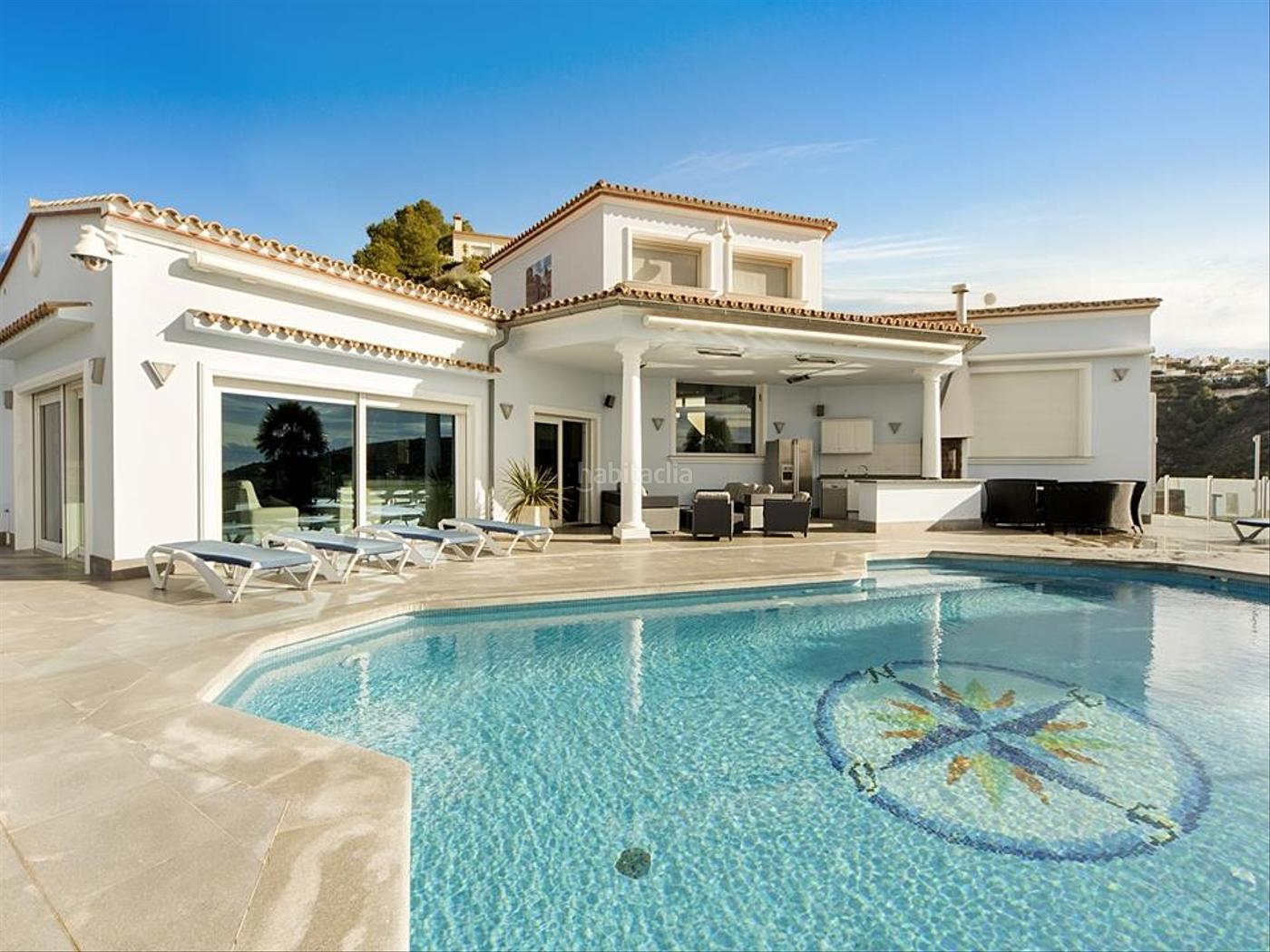 En el lateral encontrará un generoso salón y comedor, así como una sauna y un gimnasio. El área exterior ofrece una piscina climatizada con bar y parrilla, una vista fantástica, un jacuzzi y muchas otras formas de relajarse y descansar. La propiedad se eleva para revelar una vista sin obstáculos hacia el mar. Su completo complejo al aire libre está totalmente aislado de la mirada pública. La villa se encuentra en la parte superior del Valle Dorado, un pequeño suburbio en las afueras de Moraira, situado al final de una tranquila calle sin salida. El centro de la ciudad y la playa de arena de Moraira están a solo dos kilómetros de distancia.