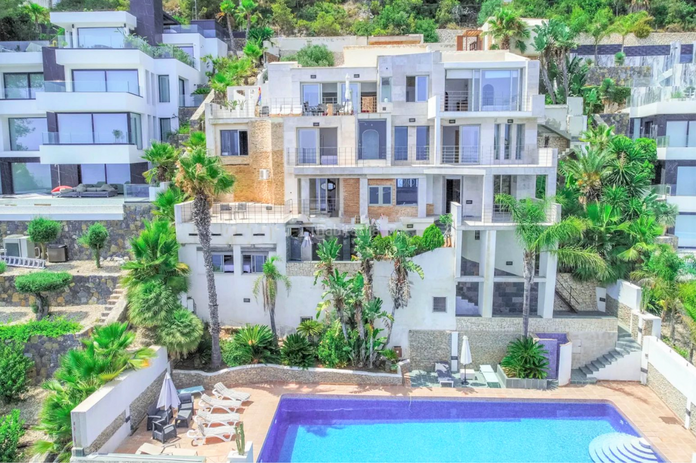 Magnifica villa de lujo situada en una de las mejores zonas de la Granadella en 1ª linea con vistas panorámicas y salida directa a la cala desde la vivienda.
