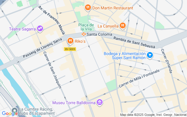 Junto a la parada de M ..Santa Coloma de Gramanet se encuentra situada al este del río Besós, entre la Serralada de Marina y el plano de Badalona...Limita al norte con el municipio de Moncada y Reixach, al sur con el de San Adrián de Besós, al este con el de Badalona y al oeste con el de Barcelona. Desde la plaza de la Vila de Santa Coloma hasta la plaza de Cataluña de Barcelona solo hay 7 km