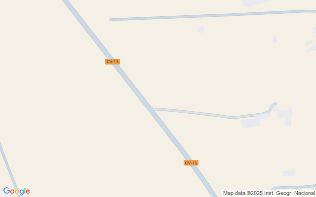 Finca cuadrada y bastante llana con algún almendro, toca una esquina a la carretera principal CV-15, desde donde tiene acceso por camino asfaltado.