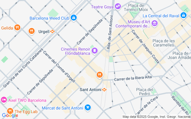 Ubicado en una zona de gran crecimiento comercial muy cerca del mercado de Sant Antonio y Plaza Universitat. Muy céntrico y bien comunicado con Metro y con varios autobuses urbanos. Zona comercial activa y cosmopolita muy atractiva, con ofertas culturales, con tiendas, bares y restaurantes muy diversos y buenos equipamientos. Sant Antoni es un barrio muy dinámico situado en un enclave perfecto, dentro de Barcelona. Andando, está muy cerca del centro y de las zonas de gran actividad para salir a comer, cenar y tomar algo. Es muy popular debido a su feria semanal de libros viejos y material de coleccionismo que se celebra cada domingo por la mañana. También es famoso por su mercado y por su gran actividad comercial donde encontrar cualquier tipo de comercio de proximidad además de grandes marcas.