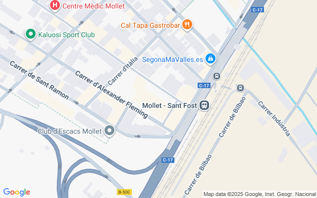 La ubicación es estratégica: a escasos metros de la estación de Mollet-Sant Fost, en una zona con gran tránsito peatonal y excelente visibilidad. La amplia fachada garantiza una exposición privilegiada para cualquier negocio que se instale aquí.