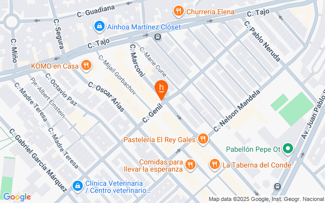 El local es de esquina, y da a dos calles, una de ellas peatonal. Tiene forma de U ya que en el centro se encuentra el portal de uno de los bloques.