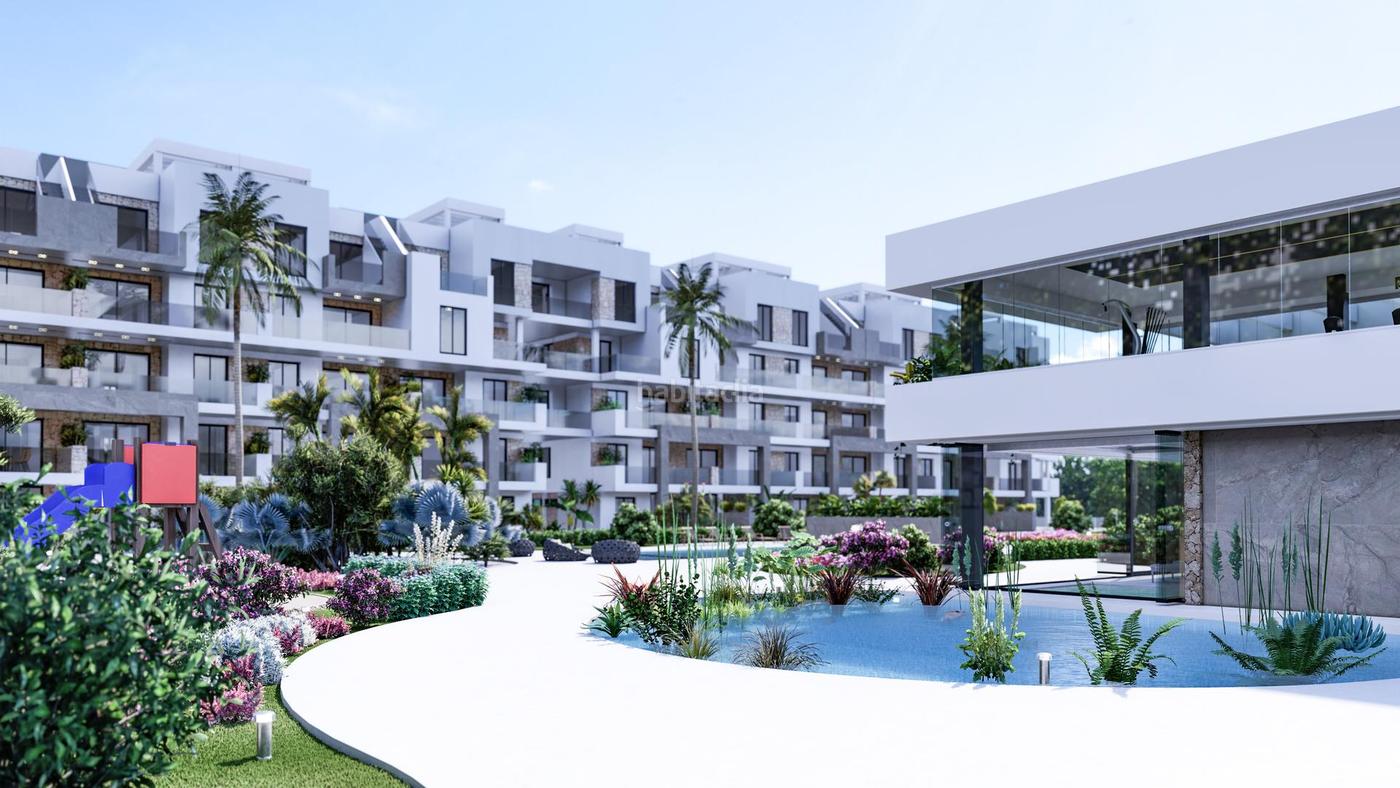 Ubicado en Alicante, en la encantadora zona de El Raso, se encuentra un desarrollo residencial que se distingue por su diseño minimalista y acabados de alta calidad. Este proyecto ofrece 135 propiedades, cada una con 2 dormitorios y superficies que varían entre 75 m² y 88 m². Su arquitectura moderna se caracteriza por espacios generosos, integración con el entorno natural, y unas impresionantes piscinas, creando un ambiente exclusivo y tranquilo.