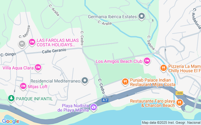 El complejo está situado en la zona de El Faro, junto al club de golf El Chaparral, a solo 5 minutos en coche del acogedor barrio de La Cala, donde hay una amplia gama de servicios de todo tipo: supermercados, tiendas, bancos, bares, restaurantes y farmacias. . El desarrollo se encuentra a poca distancia de la playa, 7 km del centro de Fuengirola, 25 km del centro de Marbella, 35 km del famoso Puerto Banús y 30 km del aeropuerto internacional de Málaga.