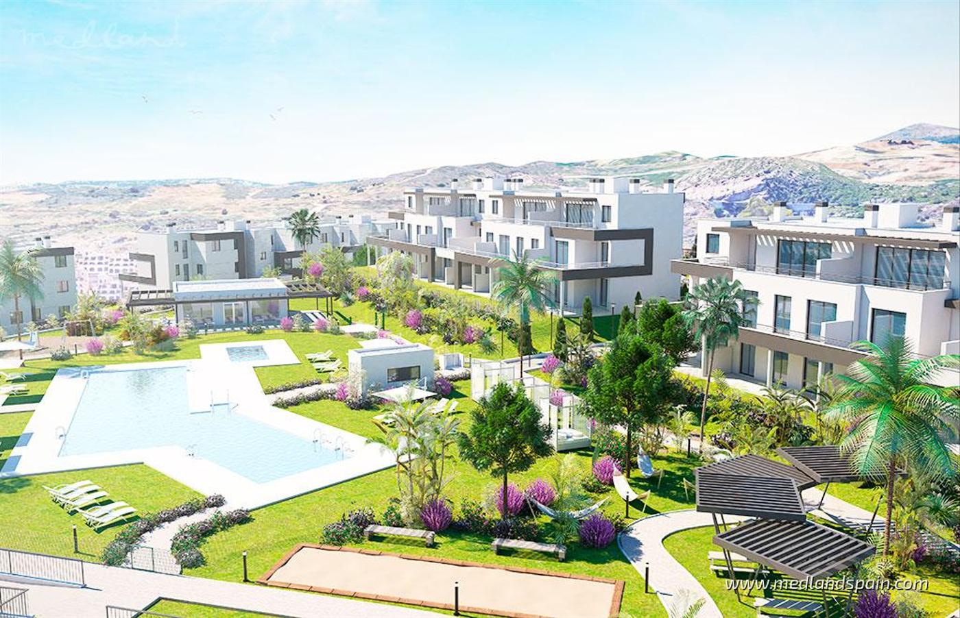 Nuevo proyecto de apartamentos en urbanización privada en una zona residencial en Estepona, a pocos minutos de la playa, cerca de todos los servicios importantes y del campo de golf Valle Romano Golf & Resort. Una privilegiada ubicación entre el mar y el Paraje Natural Los Reales de Sierra Bermeja, que permiten disfrutar de dos paisajes naturales a muy pocos kilómetros. Además, cuenta con un litoral que se extiende a lo largo de 20 kilómetros entre Puerto Banús y Sotogrande, dos de los puertos deportivos más importantes de la Costa del Sol. Perfectamente comunicado mediante las vías AP-7 y A-7, a 10 minutos de Marbella y el aeropuerto de Málaga se encuentra a menos de una hora.Disponibles apartamentos con vista al mar y a la montaña de 2, 3 y 4 dormitorios con 2 baños, espacioso salón-comedor con cocina abierta y amplia terraza. Algunas viviendas en planta baja cuentan también con un jardín privado. Entre otras calidades, incluyen cocina completamente equipada con electrodomésticos, puerta de entrada blindada de seguridad, climatización por bomba de calor, garaje y trastero.Las zonas comunes ofrecen amplios espacios ajardinados con especies autóctonas, luminarias, bancos y papeleras, piscina para adultos con iluminación nocturna y otra para niños, club social, gimnasio y zonas de juegos infantiles.