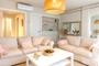 Desde el recibidor que incluye un gran espejo decorativo se accede a un espacioso salón-comedor con una elegante mesa de cristal y salida directa a una magnífica terraza de 20m², perfecta para disfrutar del buen clima mediterráneo. La cocina, moderna y totalmente equipada, se integra con la zona de día y conecta también con el salón, que cuenta con sofá, televisión y acceso a la terraza. Además, dispone de una práctica sala de lavandería independiente.