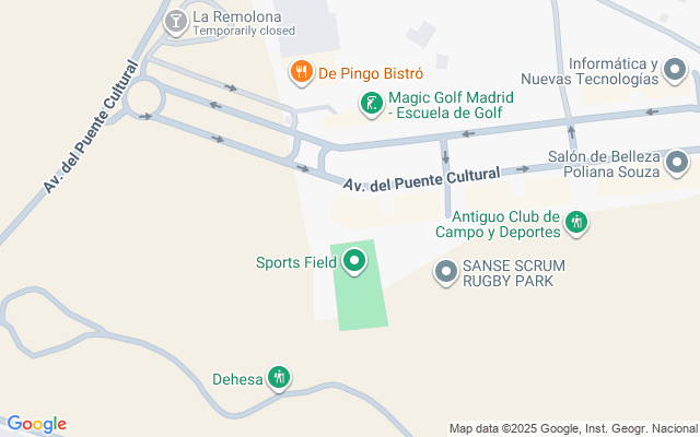 Se encuentra ubicado en la avenida Puente Cultural de la localidad, en un barrio de reciente creación de los estudios de Antena 3, frente al campo de Golf de la Dehesa Vieja. Dispone de buena comunicación por medio de transporte privado a través de la N-I o con la línea de autobús L-171.