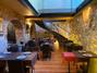Bajando unas escaleras de caracol de diseño llegamos a la planta sótano (76m2) donde se encuentra el comedor para un aforo de 49 pax. El comedor cuenta con luz natural del exterior al tener techos y compartir las cristaleras de la calle. Es un comedor dividido en 3 áreas, acogedor, con una estructura de arcos y ladrillo vista.