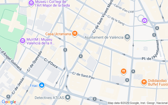 Este restaurante se sitúa en una de las zonas más céntricas y con mayor visibilidad de Valencia, a pocos pasos de la calle San Vicente Mártir, un punto de referencia en la red urbana de la ciudad. Rodeado de puntos emblemáticos como la Plaza del Ayuntamiento y la Estación del Norte, el entorno ofrece un flujo constante de residentes, trabajadores y turistas. Esta combinación de públicos asegura una demanda estable a lo largo de la semana, favoreciendo negocios de hostelería con vocación comercial.